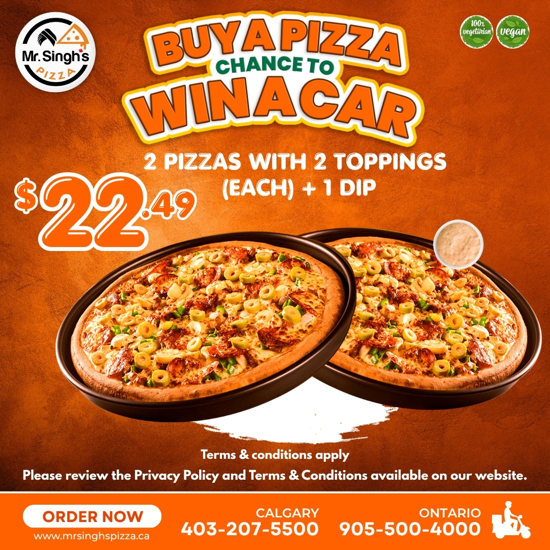 Mr. Singh’s Pizza has many locations and delivers across Canada. Click on the icons above to find the nearest store and enjoy delicious, mouthwatering pizza delivered right to your doorstep—fresh, fast, and full of flavor!