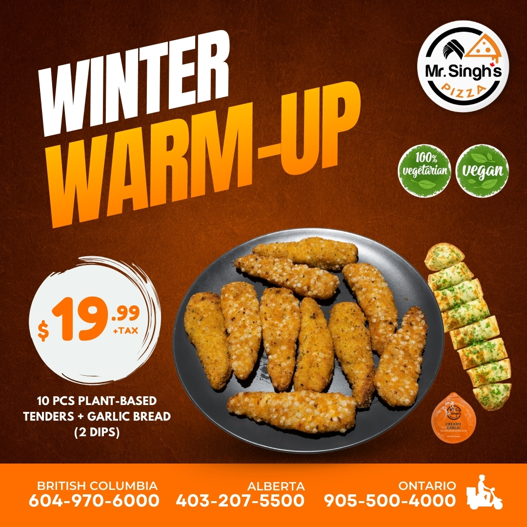 10 pcs Plant-Based Tenders + Garlic Bread – $19.99