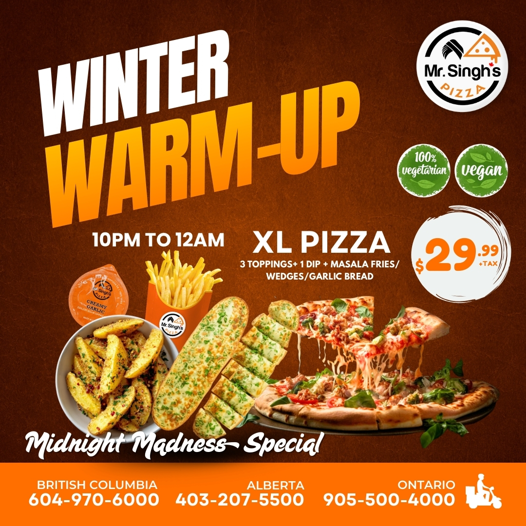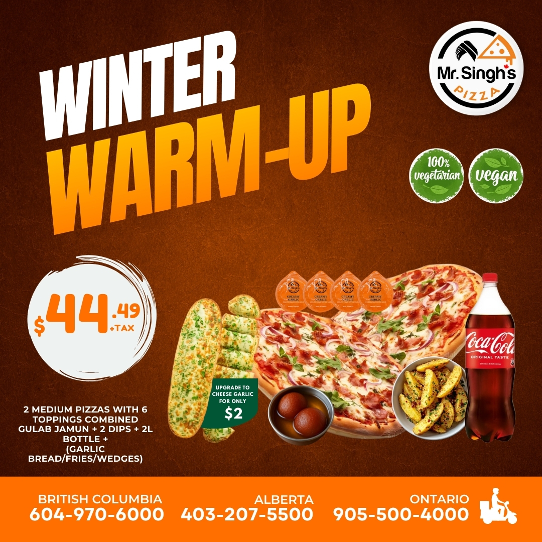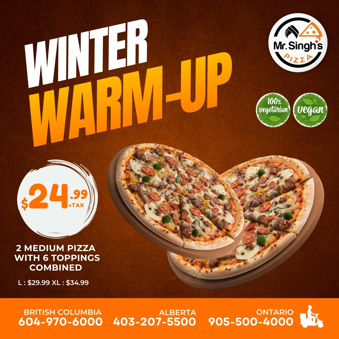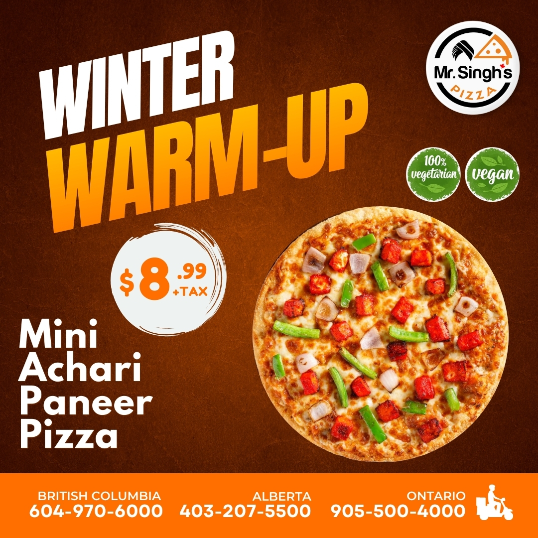 Craving something exciting? Explore our best pizza deals in Brampton and at our Bolton location, where you can enjoy your favorite Indian-style pizzas at great prices. Whether you dine in or take advantage of our fast and reliable pizza delivery in Brampton, you’ll receive hot, fresh, and mouthwatering pizzas made with love and care. We also offer a wide range of vegan pizza options for every taste.