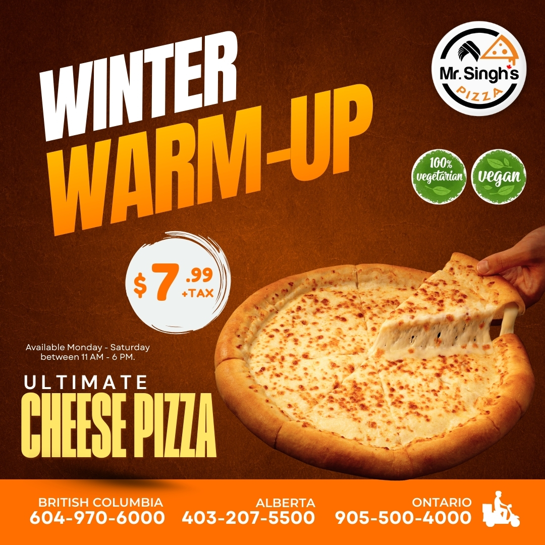 Satisfy your cravings with the best cheese pizza, veggie pizza, and Indian-style paneer pizzas near Mayfield. Fresh, flavorful, and baked to perfection. Call +1 905-500-4000 for delicious pizza now!